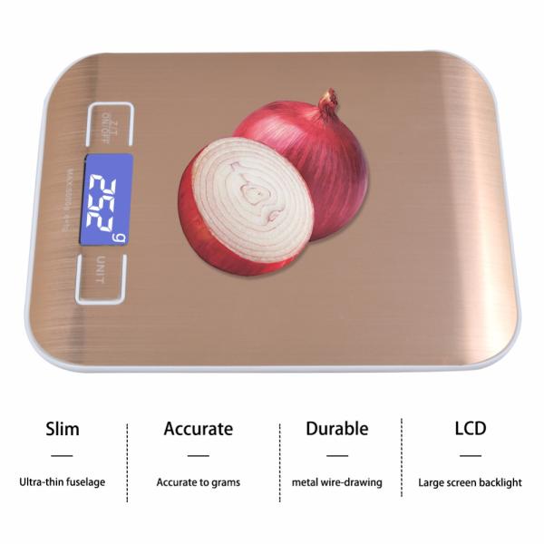 This is an ultra slim digital kitchen scale with sleek stainless steel weighing surface.